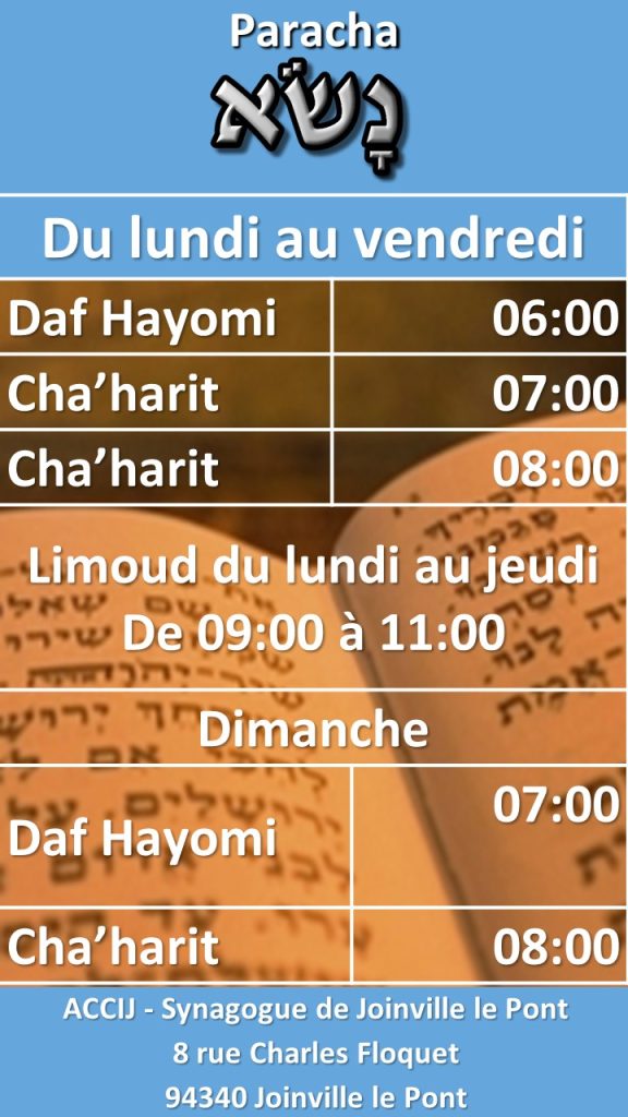 Limoud du lundi au jeudi : de 9h00 à 11h00