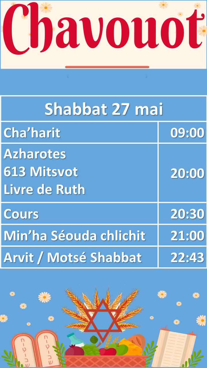 Tout au long de l’année, votre Communauté se mobilise pour vous proposer des offices en semaine, le Shabbat et durant les fêtes.